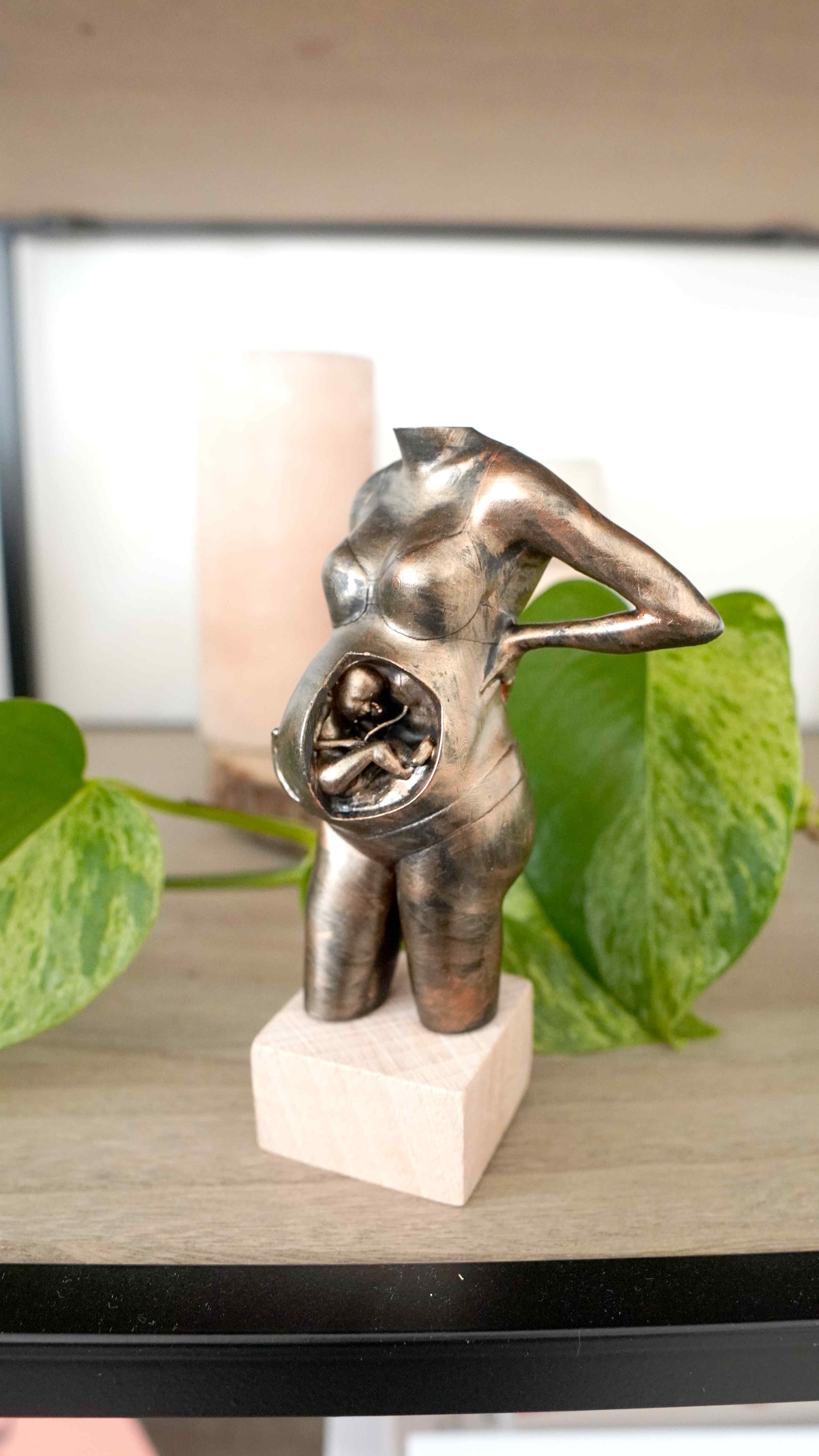 Zwangerschapsbeeldje in oud brons